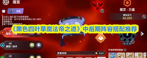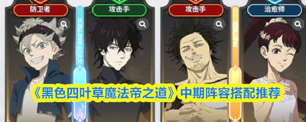《黑色四叶草魔法帝之道》作为一款改编自动漫的卡牌回合制手游,阵容搭配是战斗通关的核心策略。合理的阵容构建直接影响战局胜负,为此我们整理了《黑色四叶草魔法帝之道》中期阵容搭配推荐,供各位玩家参考。 《黑色四叶草魔法帝之道》中期阵容