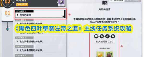 黑色四叶草魔法帝之道手游是由紫龙游戏精品打造的超人气动漫《黑色四叶草》正版授权卡牌回合制RPG手机游戏,下面给大家带来了《黑色四叶草魔法帝之道》主线任务系统攻略,希望能帮到各位魔导士大人呢~! 《黑色四叶草魔法帝之道》主线任务系