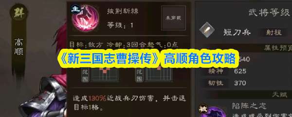 高顺是防御转输出,攻守一体平民神将,"陷阵铁壁"高顺,以群雄阵营顶级防御之姿傲视战场,本期曹老板将解析这位攻守一体的平民神将,从"防御转输出"机制到眩晕控场,助你打造不死军团的核心支柱!下面是《新三国志曹操传》高顺角色攻略! >&g