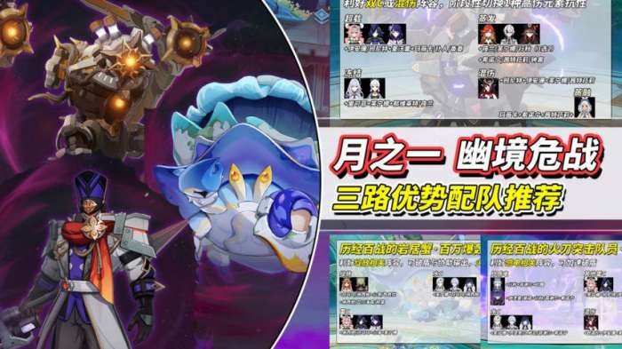 来咯各位!月之一版本更新的幽境危战启动,此次BOSS阵容为1首领2地方传奇,技能方面对比大世界版本稍有变化,下面冻梨会逐个讲解其弱点,并附上配队推荐,大家可参照自身情况选择~