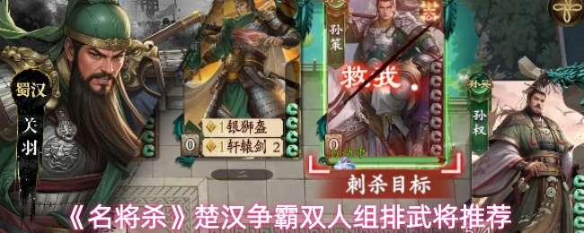 名将杀楚汉争霸双人组排武将怎么配,楚汉争霸是2V2玩法,双人组排的情况下可以打出更好的配合。今天给大家带来双人组排武将推荐,与好哥们开黑时可优先选择。 《名将杀》楚汉争霸双人组排武将推荐: 一、甘宁+大乔 这两个武将