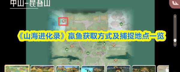 在《山海进化录》中,灵兽「蠃鱼」(编号073-074)是一种具有水系和飞行双重属性的珍稀灵兽,形如鱼而生双翼。其一阶段形态无法通过常规地面捕捉获得,玩家需前往昆吾山、敖岸山、平逢山等地图的指定水域,使用钓竿参与钓鱼玩法,方有几率将其钓获。若