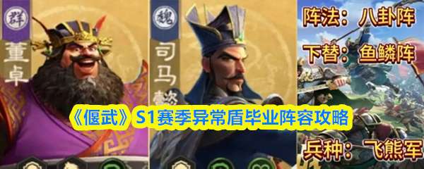 《偃武》S1赛季异常盾毕业阵容攻略,由董卓加司马懿,搭配八卦阵和飞熊军组成,该阵容通过技能与普攻为敌军附加「中毒」异常状态,造成持续伤害。但技能启动较慢、怒气回复效率低,导致输出节奏偏缓,整体伤害成型时间较长。 《偃武》S1赛季