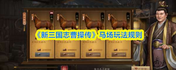 本篇为大家带来了《新三国志曹操传》马场玩法规则,驯马场分为育马阶段、驯马阶段、选拔阶段三个时期。从驯马场可以进入比赛界面,周1-5都是报名阶段,周六我们可以对进入决赛的8匹马进行助威和投喂,助威其实是没有任何奖励的,只不过大众投票投出一匹开