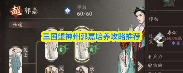 本篇给大家带来了三国望神州郭嘉培养攻略推荐!作为游戏里最高法攻面板的法师,郭嘉使用起来并不那么无脑。挂毒效率一般,甚至出手的先后顺序也能极大的影响技能伤害,推荐队友把减益挂完之后出手。 程昱培养推荐
