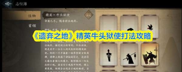 遗弃之地精英怪怎么打?游戏中有很多精英怪,包含牛头狱使、狸猫妖、提灯人、飞尸、狱火马、玄伞魑等,下面给大家带来了《遗弃之地》精英怪打法攻略,大家可以参考一下! 《遗弃之地》精英怪打法攻略 一:牛头狱使 ①特性:抗风、抗击