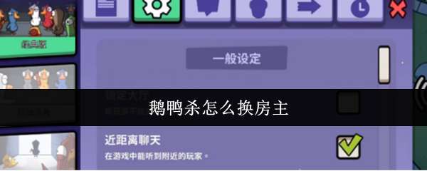 鹅鸭杀怎么换房主?在平时很多人都特别喜欢玩狼人杀或者是太空杀此类游戏,在游戏当中可以发挥出自己的优势,通过各种方式来隐藏好自己的身份,千万不要被其他对手所发现。鹅鸭杀手游其实也是属于全新的狼人杀游戏。鹅鸭杀怎么换房主?在鹅鸭杀这款游戏当中,