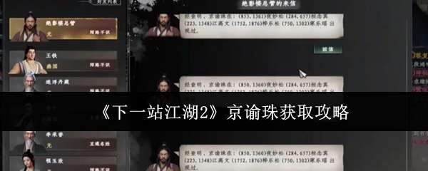 下一站江湖2京谕珠怎么获取?京谕珠是下一站江湖二这款游戏中一个比较重要的道具,当你需要购买秘籍的时候需要消耗很多,因此不少同学都想要了解下一站江湖2京谕珠怎么获得。今天的文章里面,小编就给大家总结出了关于这种道具的获取方式。如果说你在游戏内