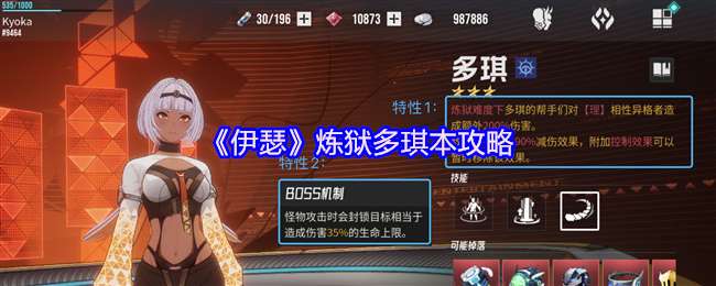 《伊瑟》炼狱多琪本攻略!普通多琪上辅助增伤(莉莉、芙蕾雅等)、破甲(克罗斯、格雷、戴娜 等)、输出手(夜离、糖糖、狐狸、荼蘼、老K 等)、奶妈(缬草、绫罗 等),打不过就在低端本沉淀+强化装备理论上都是能过的,着重讲炼狱多琪如何打。