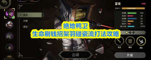 绝地鸭卫生命刷钱招架羽碰瓷流打法攻略:徽章拿【利息】和【溢财】。预言选择【血瓶】和【树汁提炼器】。其次选择【护符】和【法术】强化。护符房间,进【敏捷护符】拿【招架羽】。三牙选择,拿【生命恢复】和【技能CD】。 绝地鸭卫生命刷钱招