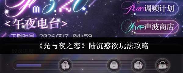 光与夜之恋陆沉惑欲怎么玩?光与夜之恋 FM5.20 午夜电台・惑欲2.27–3.7 限时开启,与陆沉录制电台、解答听众情感问题。完成节目解锁朋友圈、短信、登录语音,进度 100% 得永久道具「陆沉・午夜电台」。玩「暖场音速」、做任务拿「谧夜