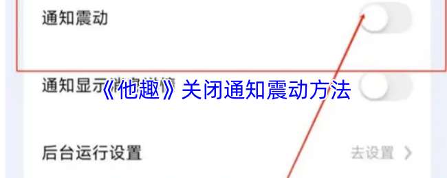 想要关闭他趣APP的通知震动,用户可打开他趣APP,在主界面点击右下角“我的”,进入个人界面后点击底部“设置”,接着在设置界面点击“消息设置”,在跳转的设置界面中点击“通知震动”右侧的按钮,当按钮颜色变成灰色,即表示关闭该功能成功。