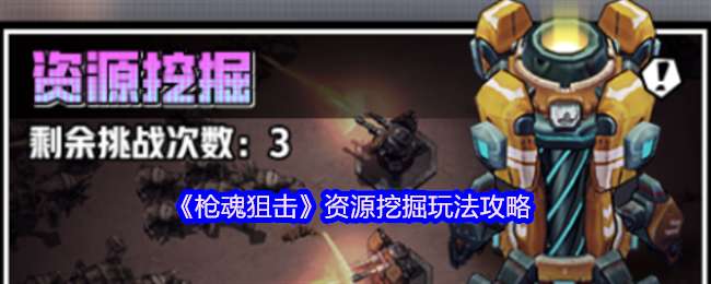 枪魂狙击游戏里在副本挑战里找到资源挖掘玩法,每天玩家会有三次挑战机会,玩家可以在这个玩法里获取到各种游戏道具,资源挖掘副本通关时间较短且需要防御的面积较广,推荐使用伤害面积大且出伤频率快的技能。下面来看看《枪魂狙击》资源挖掘玩法攻略!