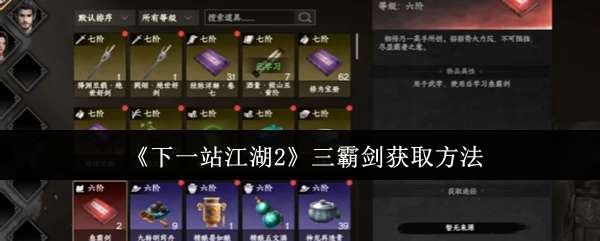 下一站江湖2三霸剑怎么获取?小编今天给大家带来的是下一站江湖2三霸剑获取方法的内容,在下一站江湖2构建的江湖体系中,地阶武学三霸剑凭借独特的招式风格与实战价值,成为众多玩家渴望习得的技能之一,这门武学源自江湖中颇具名气的绝剑门,传承蕴含着门