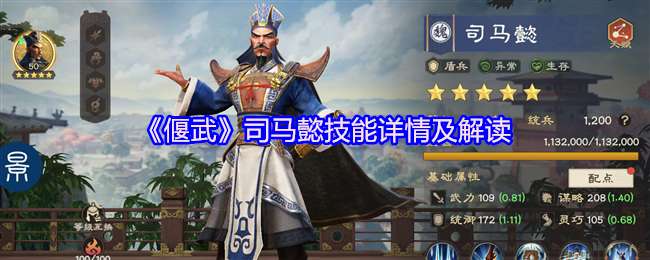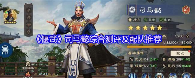 在《偃武》游戏中司马懿是异常队主流核心,可提供中毒附加、伤兵恢复等多种效果,可用于构建慢速队伍来打持续伤害。今天给大家带来《偃武》司马懿综合测评及配队推荐,小伙伴们可以做个参考。 《偃武》司马懿综合测评及配队推荐 一、武将