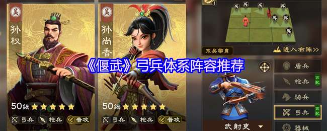 在《偃武》中,兵种之间的区别不光是“兵种克制”,每个兵种都有自身不同的特性及优势。弓兵有距离、输出稳定性双优势,是拉锯战双方持续输出的中坚力量。今天给大家带来《偃武》弓兵体系阵容推荐,小伙伴们可以做个参考。 《偃武》弓兵体系阵容