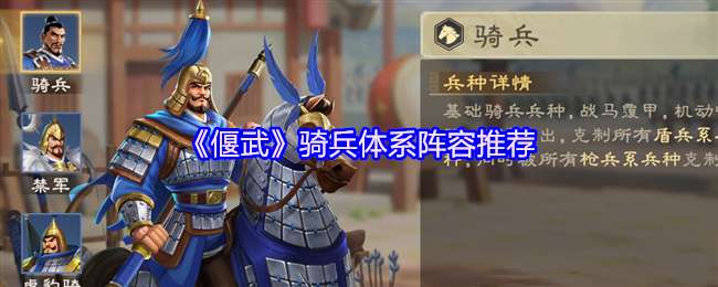 《偃武》一共有骑兵、枪兵、弓兵、盾兵四大战斗兵种,每个兵种都有独特的特性及属性数值。骑兵攻守均衡、拥有较高的机动性,目前可以走控制骑、技能骑两种路线,可以冲锋、突脸,也能够打持久战。今天给大家带来《偃武》骑兵体系阵容推荐,小伙伴们可以做个参