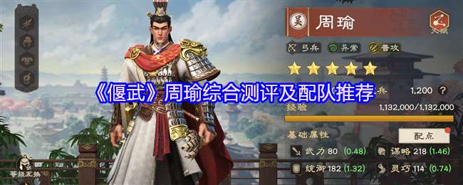 在偃武赛季中后期,用于拥有等级、数值、装备等多重优势,慢速队伍在持续作战、混战的场合更占优势。今天给大家带来慢速异常队核心周瑜综合测评及配队推荐,小伙伴们可以做个参考。 《偃武》周瑜综合测评及配队推荐 一、武将简评