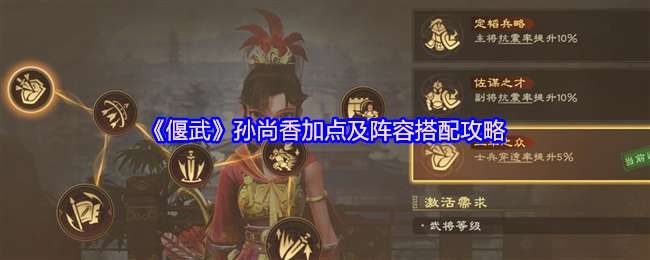 偃武游戏中孙尚香是比较通用的普攻队副将,其提供的穿透率加成可降低队伍战损,为队伍持续作战奠定基础。除了搭配孙权、太史慈外,也可搭配甘宁、周瑜、曹丕等武将,构筑空间比较广。下面来看看《偃武》孙尚香加点及阵容搭配攻略! 《偃武》孙尚