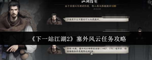 下一站江湖2塞外风云任务怎么做?今天小编给大家带来的是下一站江湖2塞外风云攻略的内容,当下一站江湖2的江湖故事延伸至塞外,一幅充满风沙气息与部落豪情的画卷缓缓展开,塞外风云资料片不仅带来了全新的地理场景,更以势力纷争与遗迹探寻为核心,打造了