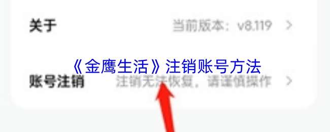 打开金鹰生活应用后点击底部【我的】进入个人中心,下滑页面找到【设置】选项并点击进入,在设置页面选择【账号与安全】或【注销账号】入口,点击【申请注销】后系统将提示注销注意事项,确认无误后输入账号密码或接收验证码完成身份验证;验证通过后点击【确