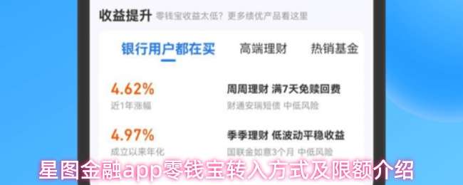 星图金融app零钱宝怎么转入,零钱宝货币基金转入支持用易付宝余额、储蓄卡快捷支付和储蓄卡网银支付付款;余额仅支持川类账户转入,共享I类账户年20万限额。 星图金融app零钱宝转入方式及限额介绍: 1、零钱宝货币基金转入支持