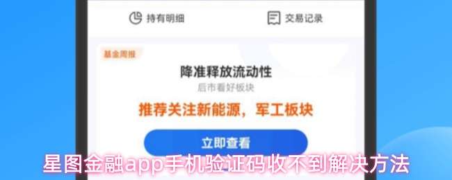 星图金融app手机收不到验证码怎么办,由于通信网关的影响,有可能造成延迟,因此请您耐心等待一下,或尝试拨打一下手机,看是否通信正常,检查您的手机号码是否是银行卡预留的号码。 星图金融app手机验证码收不到解决方法: 1、由