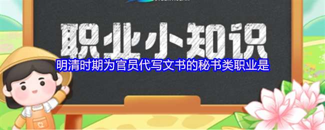 明清时期为官员代写文书的秘书类职业是?这是支付宝蚂蚁新村2025年8月20日题目,每天在蚂蚁新村答题,可以提高木兰币的产速,帮助小镇建设。点击正确答案,会获得“产速+3/时”更多的奖励。今天正确答案是【师爷】。师爷又称幕友、幕客、幕僚等,
