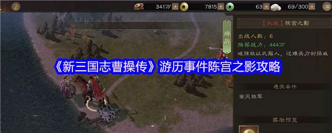 新三国志曹操传陈宫之影怎么过?"陈宫之影"是一个以高智力谋士为核心的挑战关卡,下面是小编给大家带来的《新三国志曹操传》游历事件陈宫之影攻略,感兴趣的小伙伴们一起来看看吧。 >>>《新三国志曹操传》游历事件攻略大全