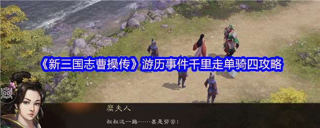 新三国志曹操传游戏中有多个游历事件,每个游历事件都有其独特的背景故事和挑战方式,下面是小编给大家带来的《新三国志曹操传》游历事件千里走单骑四攻略,感兴趣的小伙伴们一起来看看吧。 >>>《新三国志曹操传》游历事件攻略大全