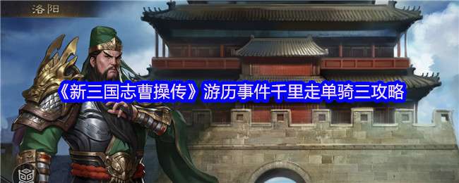 新三国志曹操传游戏中有多个游历事件,每个游历事件都有其独特的背景故事和挑战方式,下面是小编给大家带来的《新三国志曹操传》游历事件千里走单骑三攻略,感兴趣的小伙伴们一起来看看吧。 >>>《新三国志曹操传》游历事件攻略大全