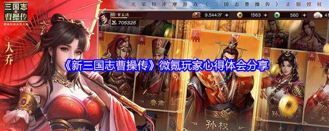 游戏不仅是一场战斗,而且充满了战略和战术思维。如何安排将领、合理部署兵力、选择最佳战术将成为游戏的关键。下面是小编给大家带来的《新三国志曹操传》微氪玩家心得体会分享,感兴趣的小伙伴们一起来看看吧。 《新三国志曹操传》微氪玩家心得