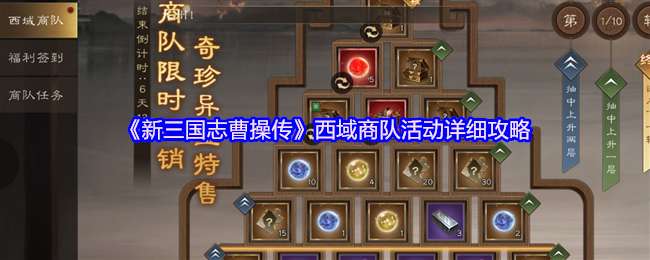 新三国志曹操传西域商队活动没技巧,就是用金铢砸,商票300金铢/张,每轮保底是27000金铢。下面是pk游戏网小编给大家带来的《新三国志曹操传》西域商队活动详细攻略,感兴趣的小伙伴们一起来看看吧。 《新三国志曹操传》西域商队活动