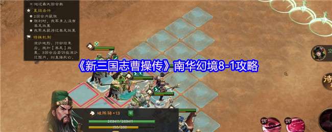在《新三国志曹操传》游戏中南华幻境涉及多个关卡,其中南华幻境8-1怎么过?下面是小编给大家带来的《新三国志曹操传》南华幻境8-1攻略,感兴趣的小伙伴们一起来看看吧。 《新三国志曹操传》南华幻境8-1攻略 关卡技巧:又是