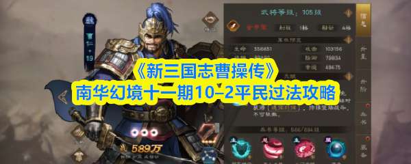 《新三国志曹操传》南华幻境十一期10–1需赵云、袁绍、郭嘉、貂蝉。开局郭嘉前移对弩兵施放“谋军”减速,貂蝉用“回归”让郭嘉撤离。袁绍召唤小兵吸引火力,赵云前置利用闪避承受攻击。敌方回合弩兵无法接近关隘,即可轻松三星通关。 《新三
