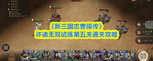 新三国志曹操传【许褚无双试炼第五关·裸衣斗马超】本关核心为吕布与诸葛亮。开局为诸葛上防卫,其后利用诸葛技能控场、吕布输出。许褚前顶反伤炮车是关键。第四回合敌军刷新枪兵,需吕布开无双清场。整体对武将练度有要求,练度不足会稍显吃力。 >