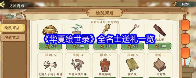 名士1级好感给100元宝和1张限定抽卡道具,可以有选择的平铺礼物,最快白嫖道具,下面是小编给大家带来的《华夏绘世录》全名士送礼一览,感兴趣的小伙伴们一起来看看吧。 《华夏绘世录》全名士送礼一览 Tips: 1、名士填色代