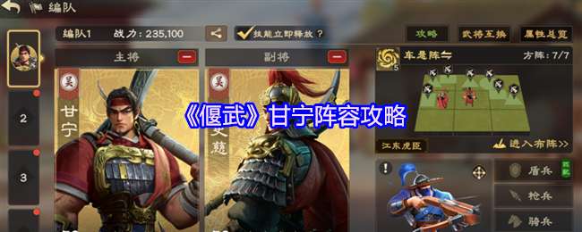 在大地图享受即时战斗的乐趣,体验众多三国武将组合、免费解锁虎豹骑等三国传奇兵种,运用兵种克制和攻击距离布置最合适您的专属阵型。下面是小编给大家带来的《偃武》阵容搭配推荐,感兴趣的小伙伴们一起来看看吧。 《偃武》阵容搭配推荐