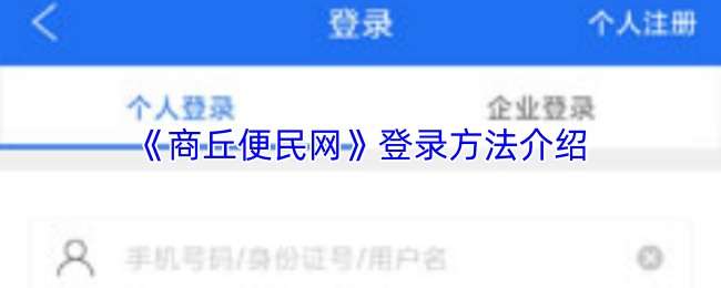 商丘便民网APP登录方法多样,用户下载安装后打开软件,点击“我的”进入登录页面,既可选择手机号、微信、微博等方式直接登录,也可点击右上角“个人注册”完成注册后再登录,登录后建议完成实名认证以享受更多功能。 商丘便民网怎么登录?