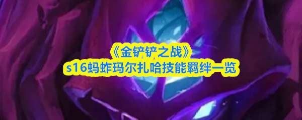 金铲铲之战S16赛季中,玛尔扎哈(蚂蚱)作为3费卡登场,拥有虚空与耀光使双羁绊。其技能“虚空虫群”可召唤两个虚灵持续攻击附近敌人,每次造成魔法伤害,是稳定的持续输出型法师。 《金铲铲之战》s16蚂蚱玛尔扎哈技能羁绊一览 一