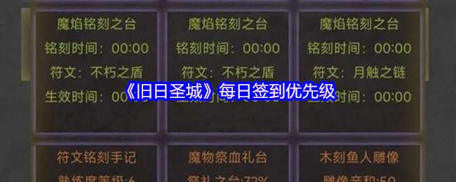 旧日圣城具有高策略性和丰富玩法,玩家能在开放世界中体验探索、养成与交易等乐趣,游戏拥有 10 万平方公里的大型开放世界。下面是小编给大家带来的《旧日圣城》每日签到优先级,感兴趣的小伙伴们一起来看看吧。 《旧日圣城》每日签到优先级