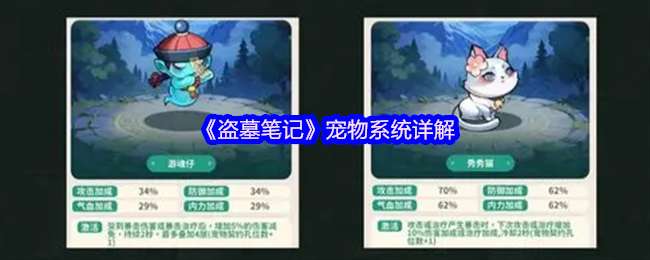 不同的宠物契约成功后,可以提供不同的加成效果,大家需要根据伙伴的职业定位,来为他们选择合适的宠物契约。下面是小编给大家带来的《盗墓笔记》宠物搭配推荐,感兴趣的小伙伴们一起来看看吧。 《盗墓笔记》宠物搭配推荐 1、输出类伙伴