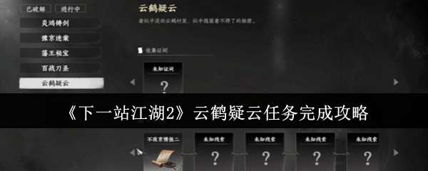 下一站江湖2云鹤疑云任务怎么完成?今天小编给大家带来的是下一站江湖2云鹤疑云任务玩法的内容,宁静的村落表象下暗藏着一段以云鹤疑云为核心的探索任务线,任务以线索收集与逻辑推理为核心玩法,玩家通过与NPC的深度互动、线索谜题的层层破解,逐步揭开