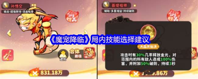 魔宠降临游戏中玩家是需要根据属性克制来选择合适的魔宠来应对不同关卡的,局内共有三种品质技能,分别为蓝色技能、紫色技能、金色技能,同时,技能又分为固定的战斗技能和魔宠技能。只有携带对应魔宠后,才能有相应的魔宠技能。建议技能优先选择全体加攻速、