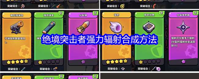 在绝境突击者游戏中分裂弹需要合成获得!5星橡胶榴弹炮与1星强效弹夹组合可以突破进阶变为分裂弹。分裂弹技能:爆炸后会向四周发射造成二次爆炸的子弹。 >>>《绝境突击者》超武合成图鉴 绝境突击者分裂弹合成方法
