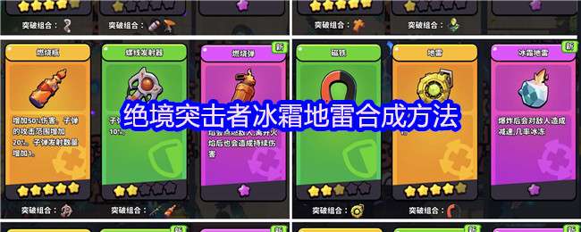 在绝境突击者游戏中冰霜地雷需要合成获得!5星地雷与1星磁铁组合可以突破进阶变为冰霜地雷。冰霜地雷技能:爆炸后会对敌人造成减速,几率冰。 >>>《绝境突击者》超武合成图鉴 绝境突击者冰霜地雷合成方法 冰霜