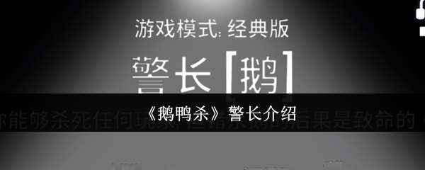 鹅鸭杀警长怎么样?鹅鸭杀是很多玩家都喜欢的一个多人游戏,每个成员都可以加入其中,和其他成员组成队伍,进行一场脑力上的对抗,为了能让这些角色进行区分,里面会设定两个阵营,下面要带来的就是,鹅鸭杀警长介绍,这是鹅阵营中的一个角色,也就是好人阵营