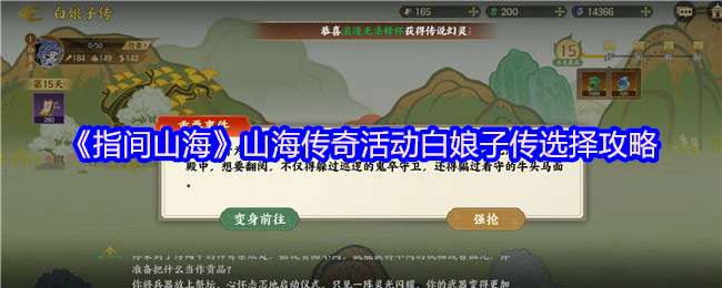 指间山海山海传奇活动白娘子传怎么通关?在山海传奇活动包含多个不同的角色主题,该活动通过玩家的选择来推进剧情,并增加角色属性,从而达到通关或失败的结局,下面是《指间山海》山海传奇活动白娘子传选择攻略,大家不清楚如何过关的速来!