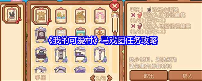 我的可爱村是一款以像素风格为主的模拟经营类手游,专为喜欢放置玩法和慢节奏生活的玩家设计。完成马戏团的物品收集以后可以获得服装奖励,下面是《我的可爱村》马戏团任务攻略。 我的可爱村马戏团任务攻略 前提是已经建造好车站。 马