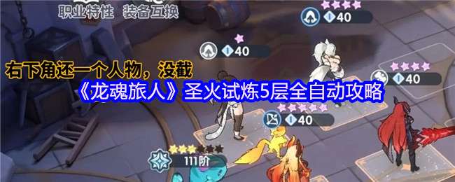 龙魂旅人是一款魔幻冒险rpg游戏,在这个开放的世界中冒险,玩家可以在龙魂旅人游戏世界中自由探索,在这个神秘的魔幻世界中开启你的挑战,培养自己角色的独特技能,下面给大家带来了《龙魂旅人》圣火试炼5层全自动攻略! 《龙魂旅人》圣火试